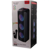 یک اسپیکر پرتابل قدرتمند با طراحی زیبا و کاربردی است که برای استفاده در مهمانیها، دورهمیها و فضاهای باز گزینهای ایدهآل محسوب میشود. این اسپیکر از فناوری بلوتوث برای اتصال بیسیم پشتیبانی میکند و همچنین دارای پورت USB، ورودی کارت حافظه (SD) و AUX است که امکان پخش موسیقی از منابع مختلف را فراهم میسازد. کیفیت صدای قوی با بیس عمیق، همراه با نورپردازی LED جذاب، تجربهای منحصربهفرد از موسیقی ارائه میدهد. از دیگر امکانات این مدل میتوان به ورودی میکروفون برای کارائوکه، باتری داخلی قابل شارژ با ماندگاری طولانی و طراحی سبک با دستگیره حمل برای جابجایی آسان اشاره کرد از قدرت صدا، قابلیتهای چندمنظوره و طراحی کاربرپسند است که تجربه صوتی بینظیری را به ارمغان میآورد. دارای سه سابووفر با اندازه 8 اینچ است که طراحی آنها علاوه بر ایجاد جلوهای خاص، نقش مهمی در ارائه صدای قدرتمند و بیس عمیق ایفا میکنند.. همراه این اسپیکر یک میکروفون بیسیم ارائه میشود که استفاده از آن برای سخنرانیها، آوازخوانی یا اجرای زنده را آسان میکند. میکروفون باکیفیت این محصول، صدایی شفاف و بدون نویز ارائه میدهد که برای کاربران حرفهای نیز بسیار مناسب است. یکی از مهمترین ویژگیهای اسپیکر 8303 ZQS، توان خروجی 40 وات آن است که صدایی قوی و شفاف ارائه میدهد. این میزان قدرت، کافی است تا محیطهای بزرگ مانند سالنهای اجتماعات یا مهمانیها را پوشش دهد. ترکیب این توان خروجی با سه سابووفر 8 اینچی، بیسی عمیق و جزئیات صوتی دقیق را به ارمغان میآورد. این اسپیکر مجهز به یک باتری قدرتمند 4500 میلیآمپری است که امکان پخش موسیقی برای ساعتهای طولانی را فراهم میکند. با یک بار شارژ کامل، میتوانید بدون نگرانی از کاهش انرژی، از اسپیکر برای مدت طولانی در محیطهای مختلف استفاده کنید. این ویژگی برای مسافرت، پیکنیک یا مراسمهای طولانی بسیار کاربردی است. اسپیکر ZQS مدل 8303 با امکانات پیشرفته، صدای قدرتمند و طراحی مدرن، گزینهای ایدهآل برای انواع کاربردها از جمله سرگرمی، موسیقی و استفاده حرفهای است. این اسپیکر با ویژگیهای بینظیر خود مانند ورودی گیتار و کیبورد، میکروفون بیسیم و باتری قدرتمند، تمامی نیازهای کاربران را برآورده میکند